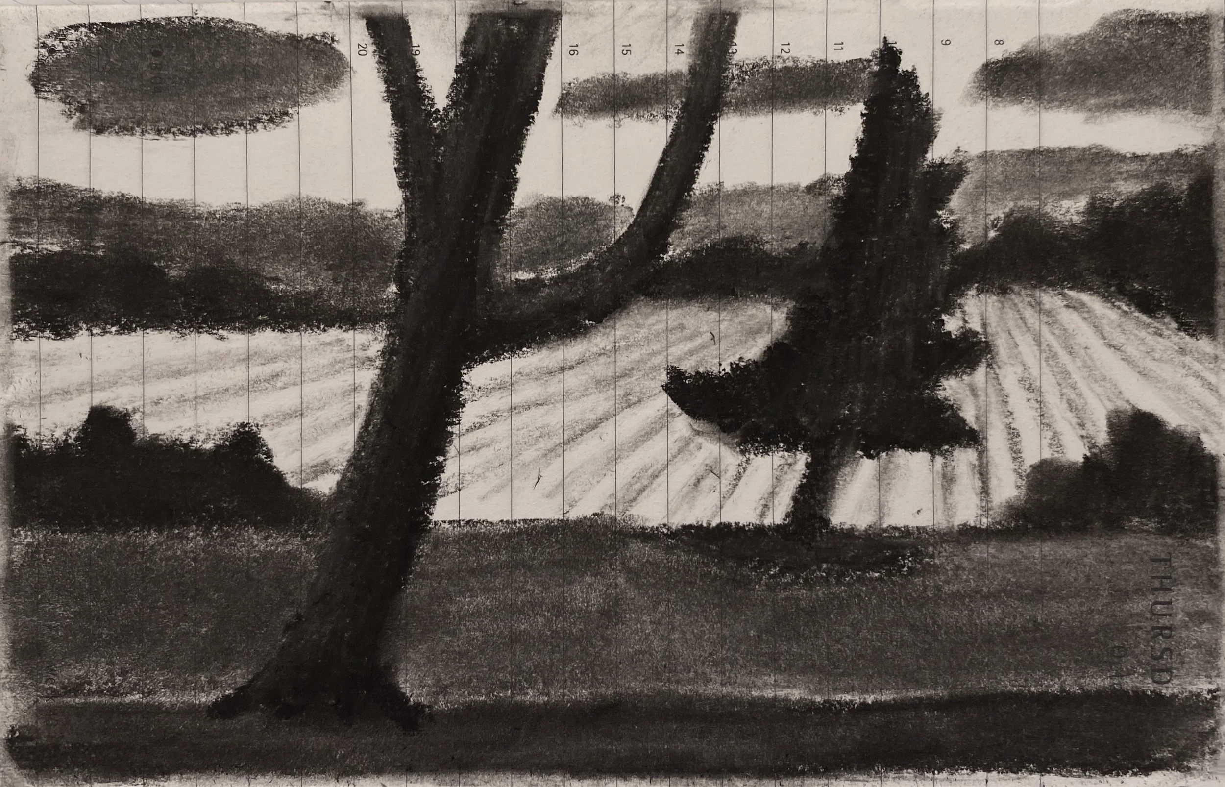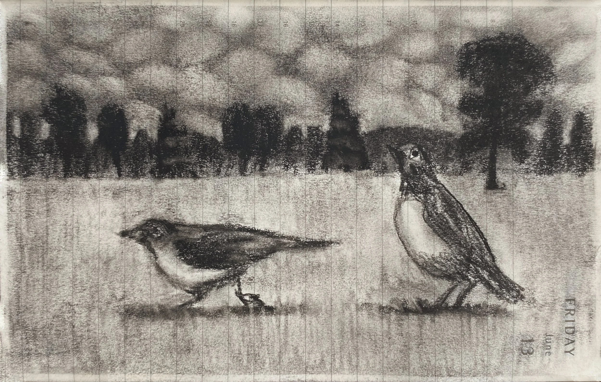 At the start of 2021, I began making daily charcoal drawings in a small Moleskine planner. After working from direct observation for many years, I used the drawings to explore working from memory and focusing more on design and invention. This practice continues today and each drawing never fails to surprise me.
