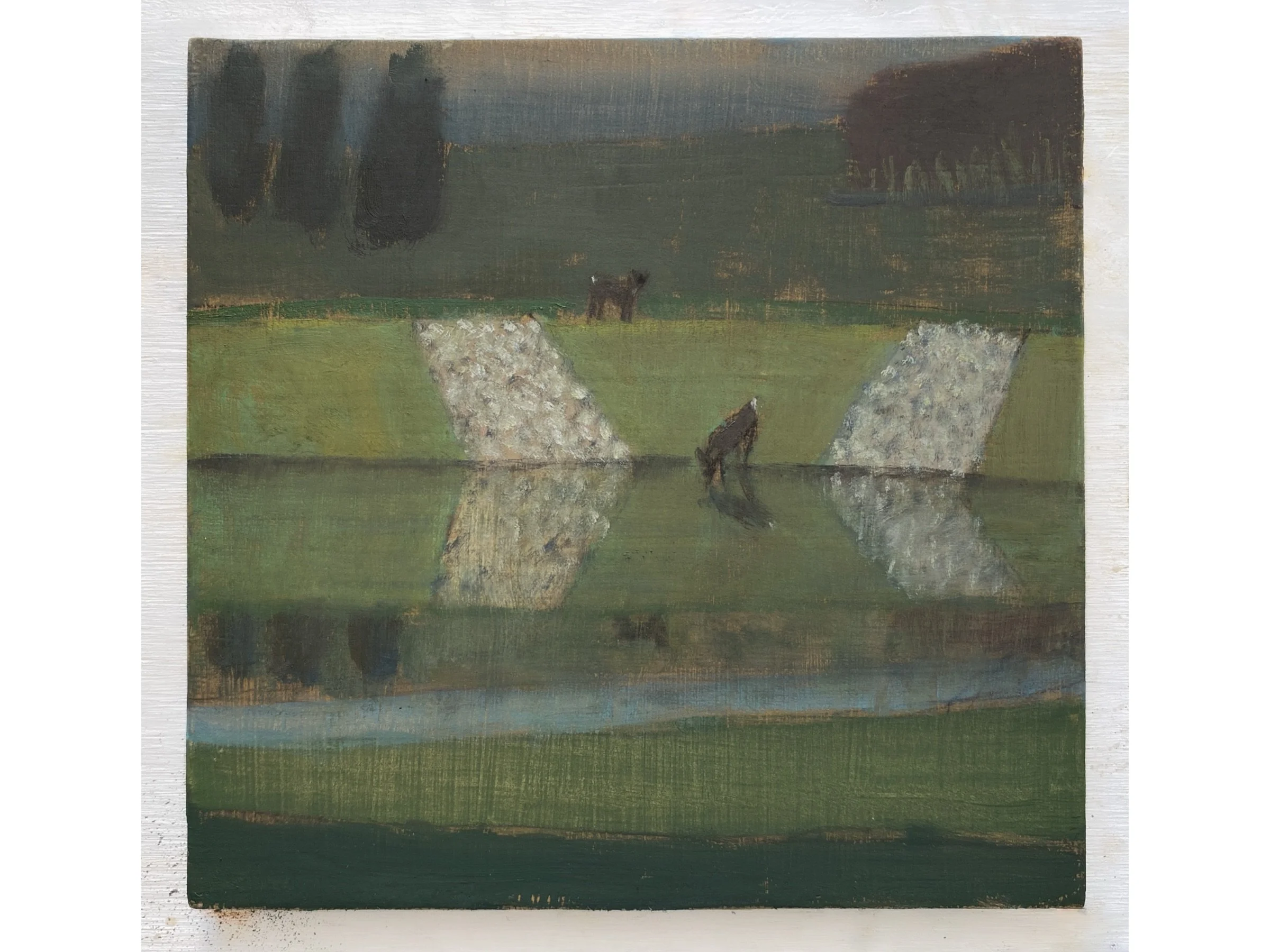 Available › Deer at the Retention Pond Image 1 of 2 Image 2 of 2 Deer at the Retention Pond $575.00 oil on wood panel with artist-made gesso ground9 5/8 x 9 7/8 x 3/4”wired for hanging, unframed Add To Cart Added! oil on wood panel with artist-made gesso ground9 5/8 x 9 7/8 x 3/4”wired for hanging, unframed