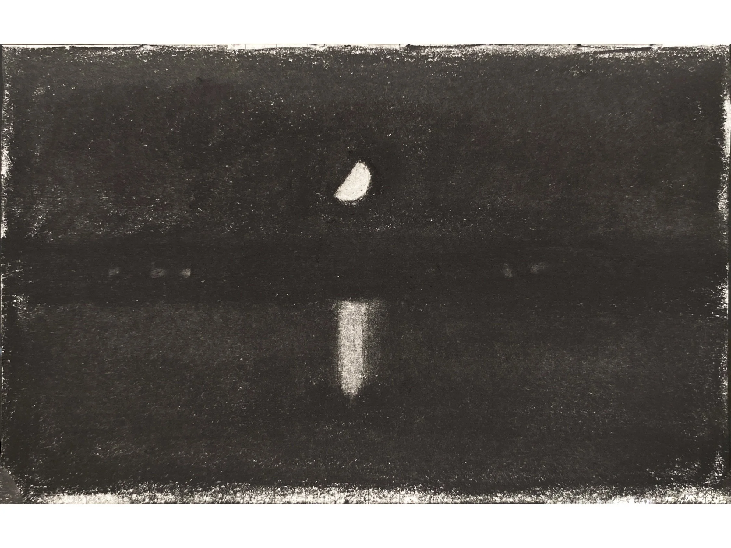 Available › Half Moon Rising on the Cove Image 1 of 1 Half Moon Rising on the Cove $225.00 charcoal on Moleskine journal paper3 1/2 x 5 1/2”mounted on 5 x 7” backing board Add To Cart Added! charcoal on Moleskine journal paper3 1/2 x 5 1/2”mounted on 5 x 7” backing board